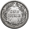 Liberty Head dimes are one of the US silver dimes which have been circulated more than 100 years ago. Mr. Charles E. Barber, the chief engraver of the US Mint in 19th century, designed this coin and that's the reason why this coin called Barber dime. (Mr. Barber also designed qarter & half dollar at the same time). A profile of Liberty on obverse and a laurel wreath on reverse.