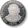coin for Schubert. Detailed portrait on silver proof coin. |
